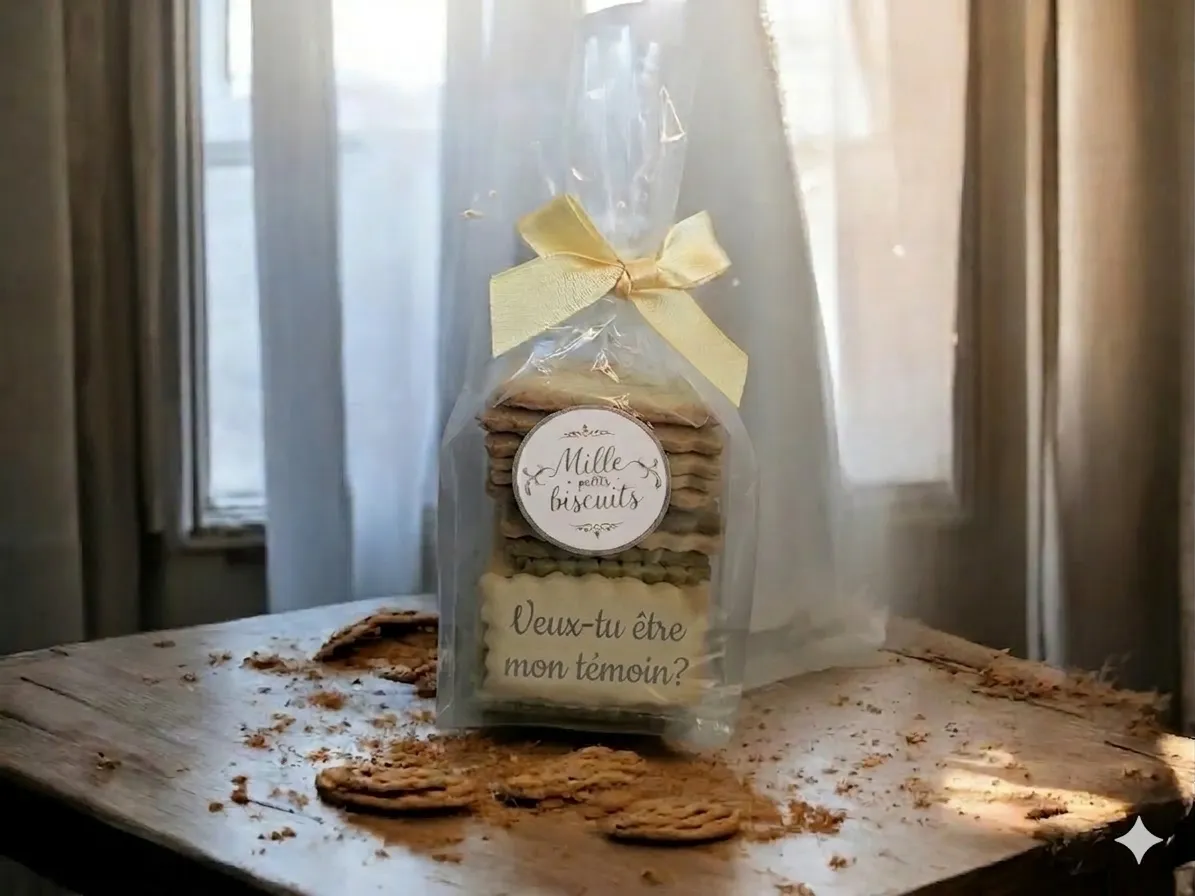 Une version en sachet de 3 biscuits est également disponible, parfaite comme cadeau invité élégant et gourmand pour vos événements.