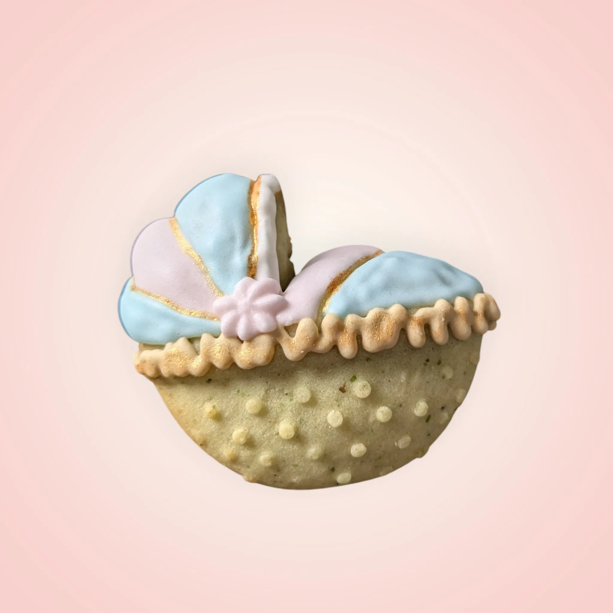 Pensé comme un véritable cadeau d’exception, ce coffret réunit une sélection de biscuits aux formes emblématiques de la naissance : bébé, body, bavoir, inscription “baby”, couffin… Chaque pièce est moulée avec précision puis délicatement décorée à la main en glaçage royal, révélant un travail minutieux et une finition élégante.