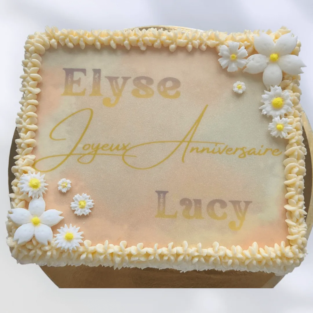 Commandez votre impression alimentaire personnalisée : photo, logo ou message sur feuille comestible. Idéal pour un gâteau unique et original.